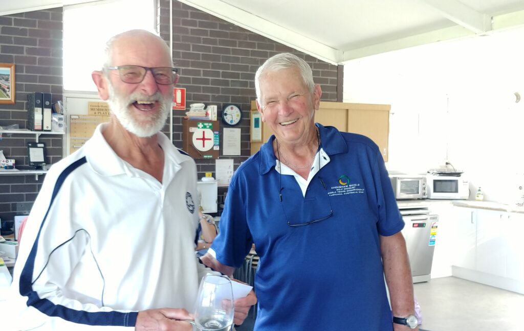 A very happy Tim Parker (left) at the presentation with Croquet Tasmania President Graham Keating